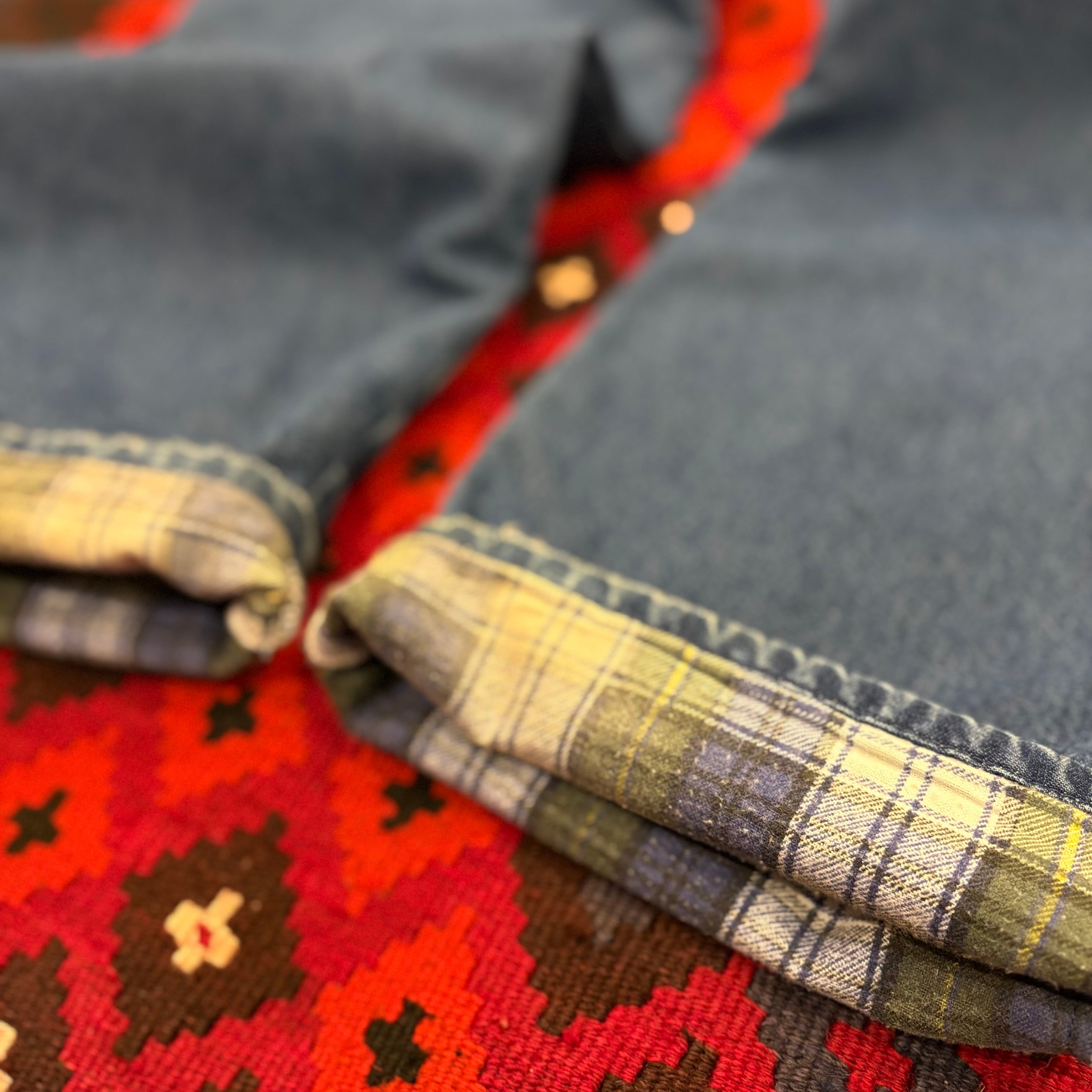 ロールアップでチェック柄の裏地を見せる履き方もオススメ!