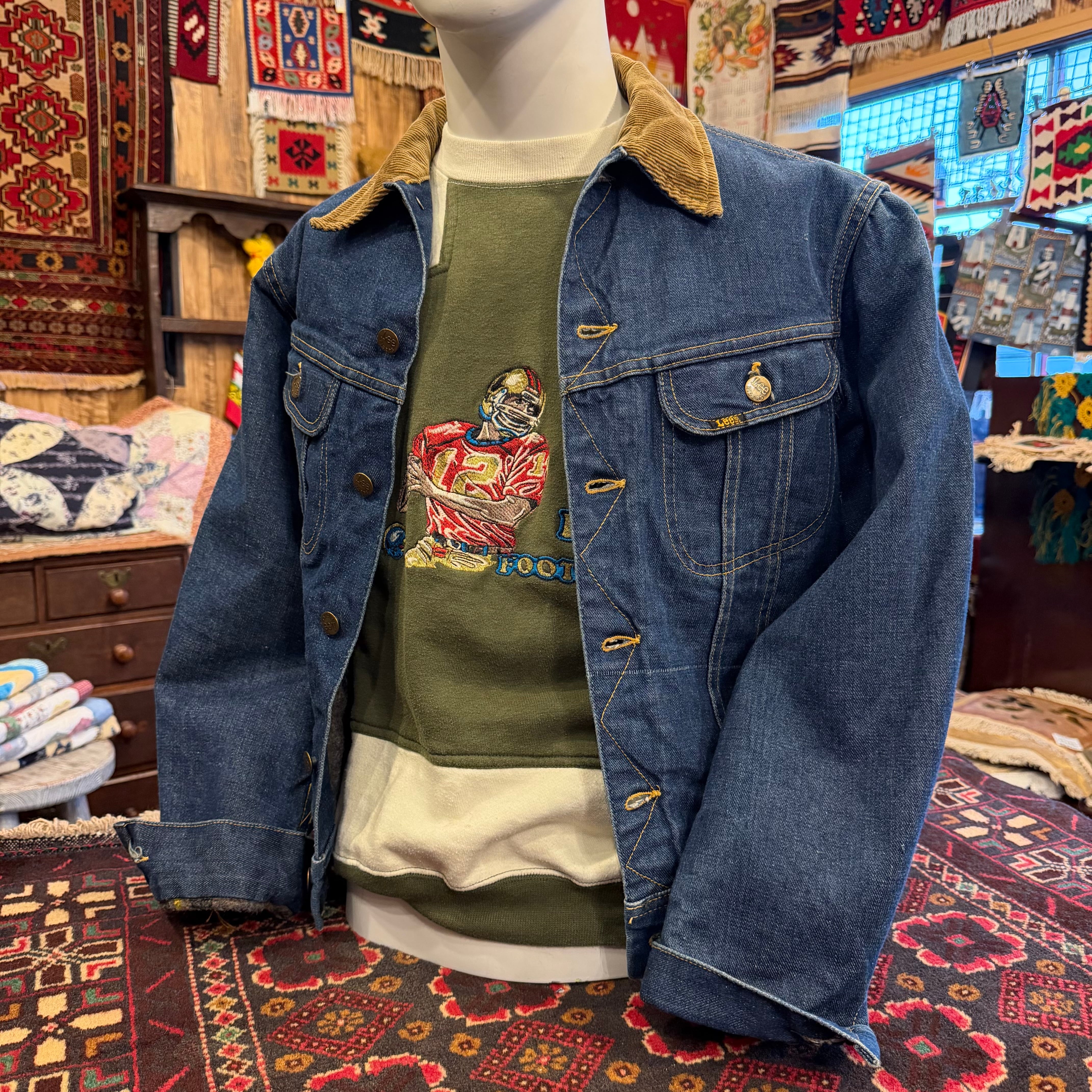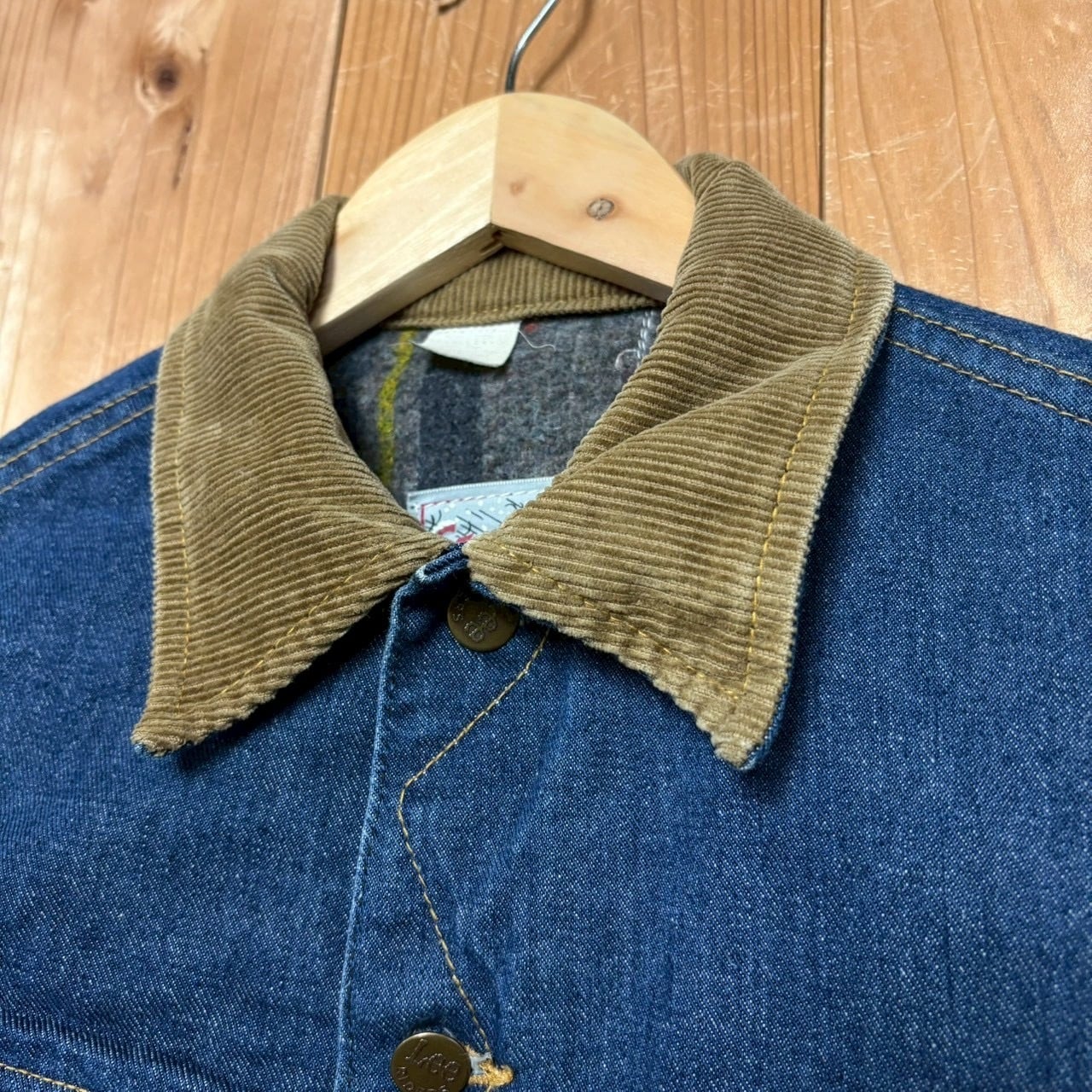 人気の高いブランケット付きの暖かいデニムジャケット。襟がコーデュロイになっているので普通のデニムジャケットとは少し雰囲気の違うアイテムです。色残りも良いので是非この機会に。