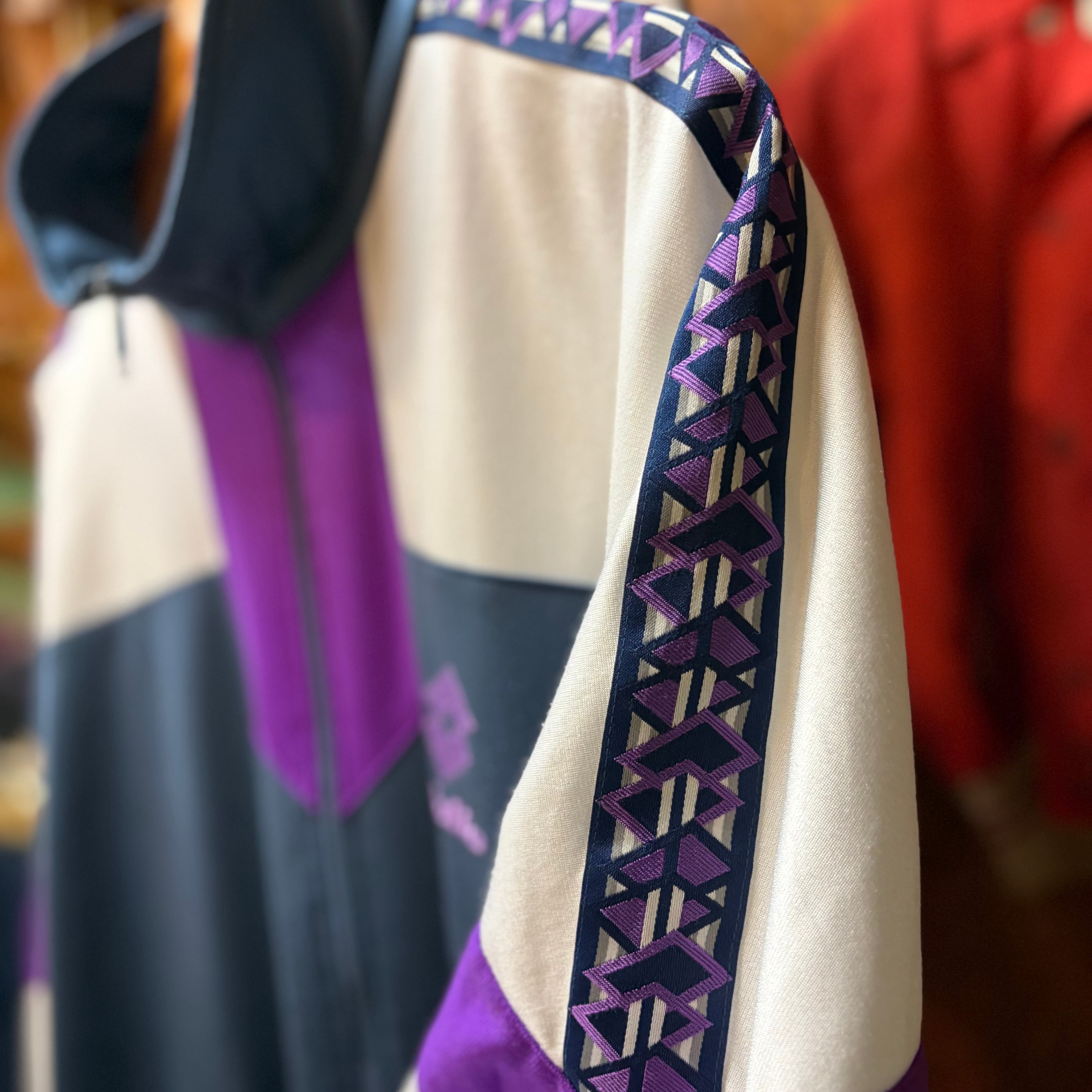 ネイビー×ホワイト×パープルの配色でレトロなデザインがgood!