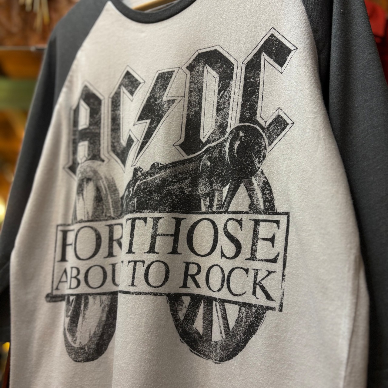 ロックバンドAC/DCのラグランプリントTシャツ